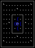 There are five rooms to the sides of the above area, containing the stairs (in separate rooms), five random monsters, three random traps, and six random items; they are linked to each other and to the above room by corridors. The Oracle is at the center of the three by three room (called Delphi), amid the fountains. Delphi has a random empty doorway in one wall. There are two random monsters generated in the area surrounding Delphi. The marked statues are: